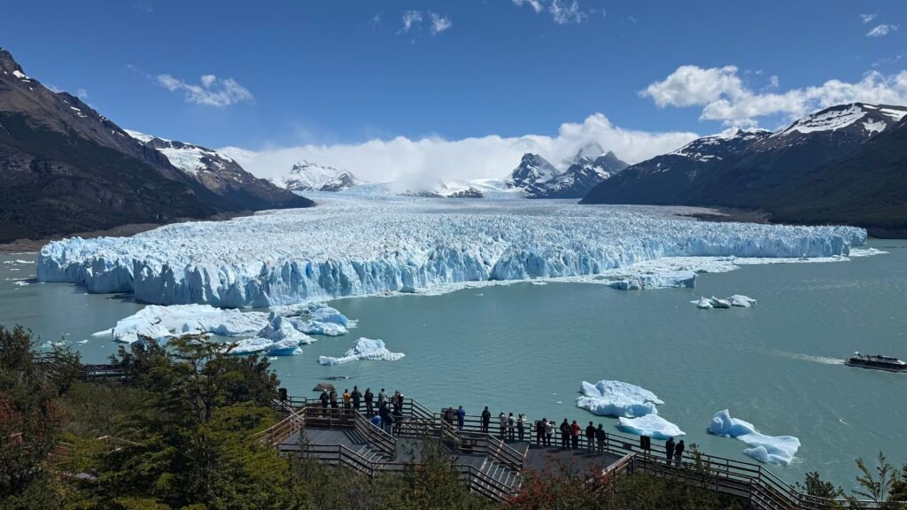Después del trekking, recorrí las famosas pasarelas frente al glaciar. Desde allí puedes observar su inmensidad, escuchar los desprendimientos de hielo y sentir la fuerza de la naturaleza en su máxima expresión. Es uno de esos lugares donde simplemente te quedas mirando… sin querer irte.